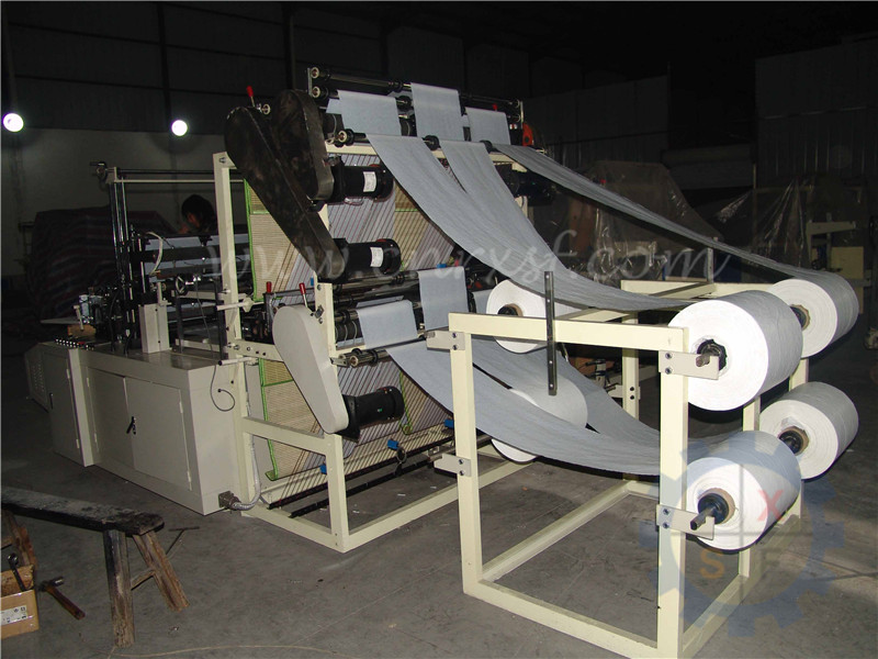 2. Всестороннее описание Польностью автоматическими высокоскоростными 6 линиями мешком делая машину будут машина большой производительности. Нагрузка полиэтиленовой пленки на вал разматывать 6 и подавать моментным двигателем . Нижнее запечатывание 2 комплектами приспособления heat-sealing (структуры Двойн-платформы). приспособление Холодн-вырезывания можно оборудовать с автоматическими пробивая мешками приспособления произведенными плоскими или мешками тельняшки.